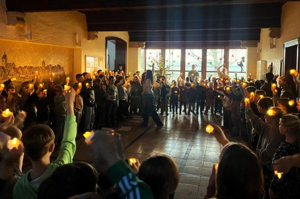 Jeden Montag in der Adventszeit beginnen wir den Schultag mit unserem Adventssingen. Schon am frühen Morgen versammeln sich alle Kinder der Grundschule, um mit Liedern besinnlich in die neue Woche zu starten und die besondere Zeit des Advents gemeinsam zu erleben.